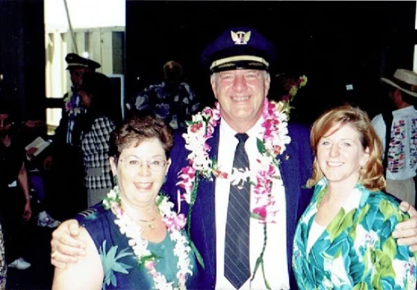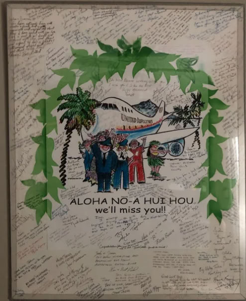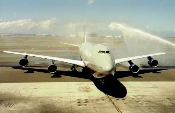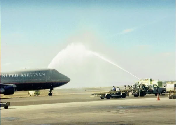 Upon returning to Honolulu Hawaii on my final flight we were presented a “Water Lei.” Fire trucks on each side of the airplane use their water cannons to form a bridge of water that we taxi under. This is an honor reserved for pilots flying their last flight into Honolulu but seldom done on the mainland except for special management pilots.