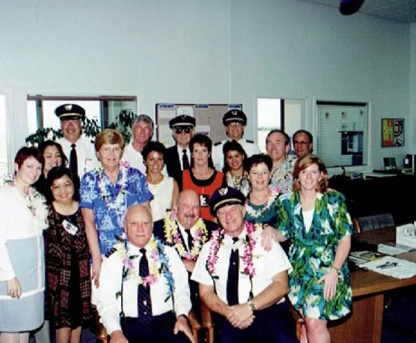 This is my hand picked crew. All three of us retired on the same flight. A first in the industry.