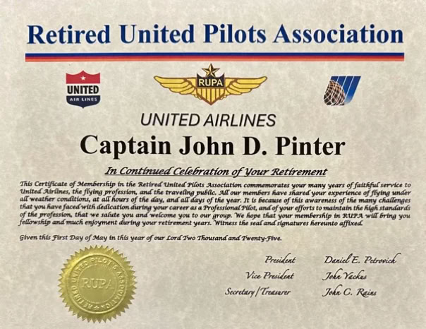 We have been friends since grade school and were married in 1962, long before I became a pilot. She believed in me and made many sacrifices so that I could achieve my boyhood dream.